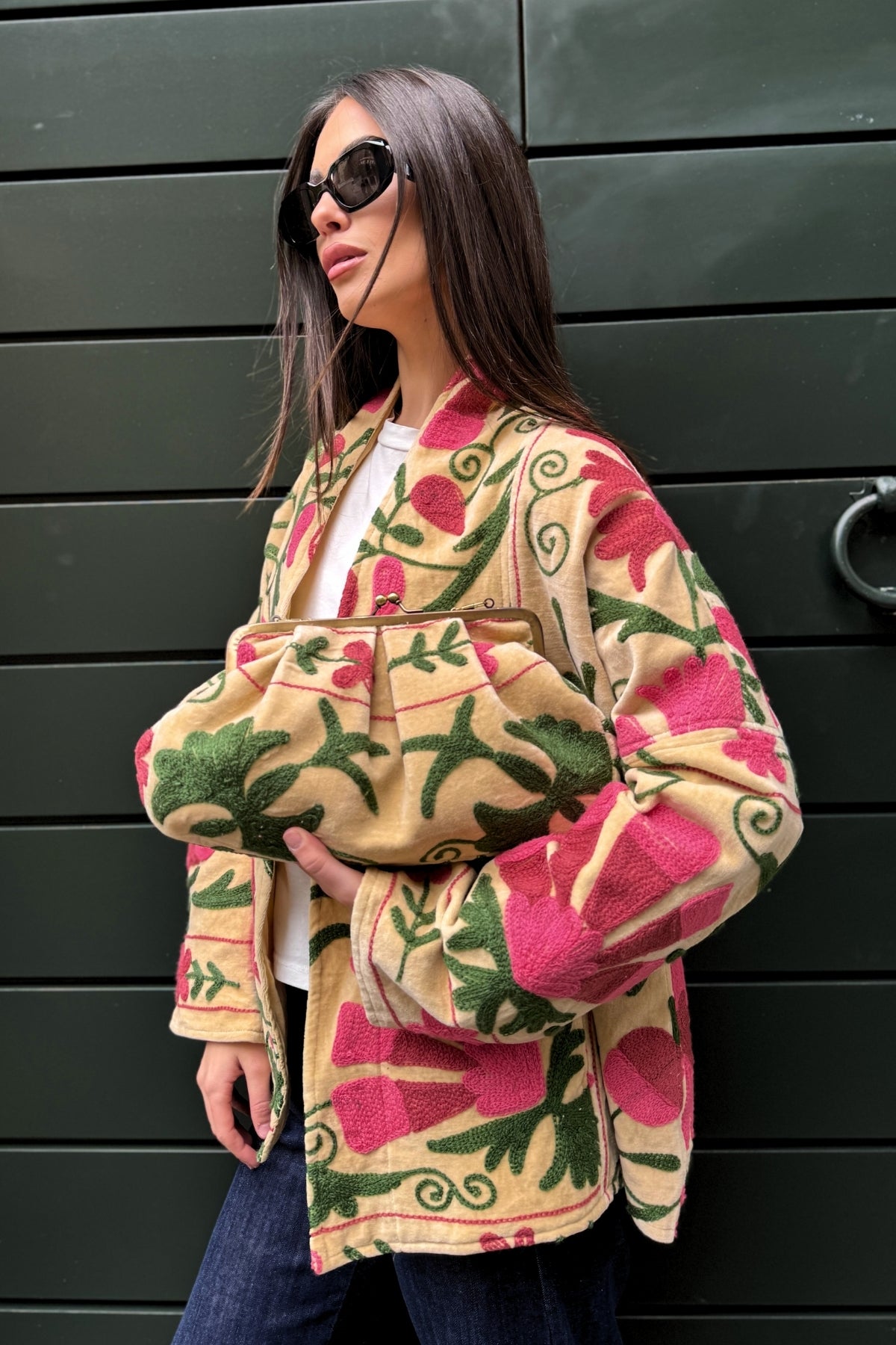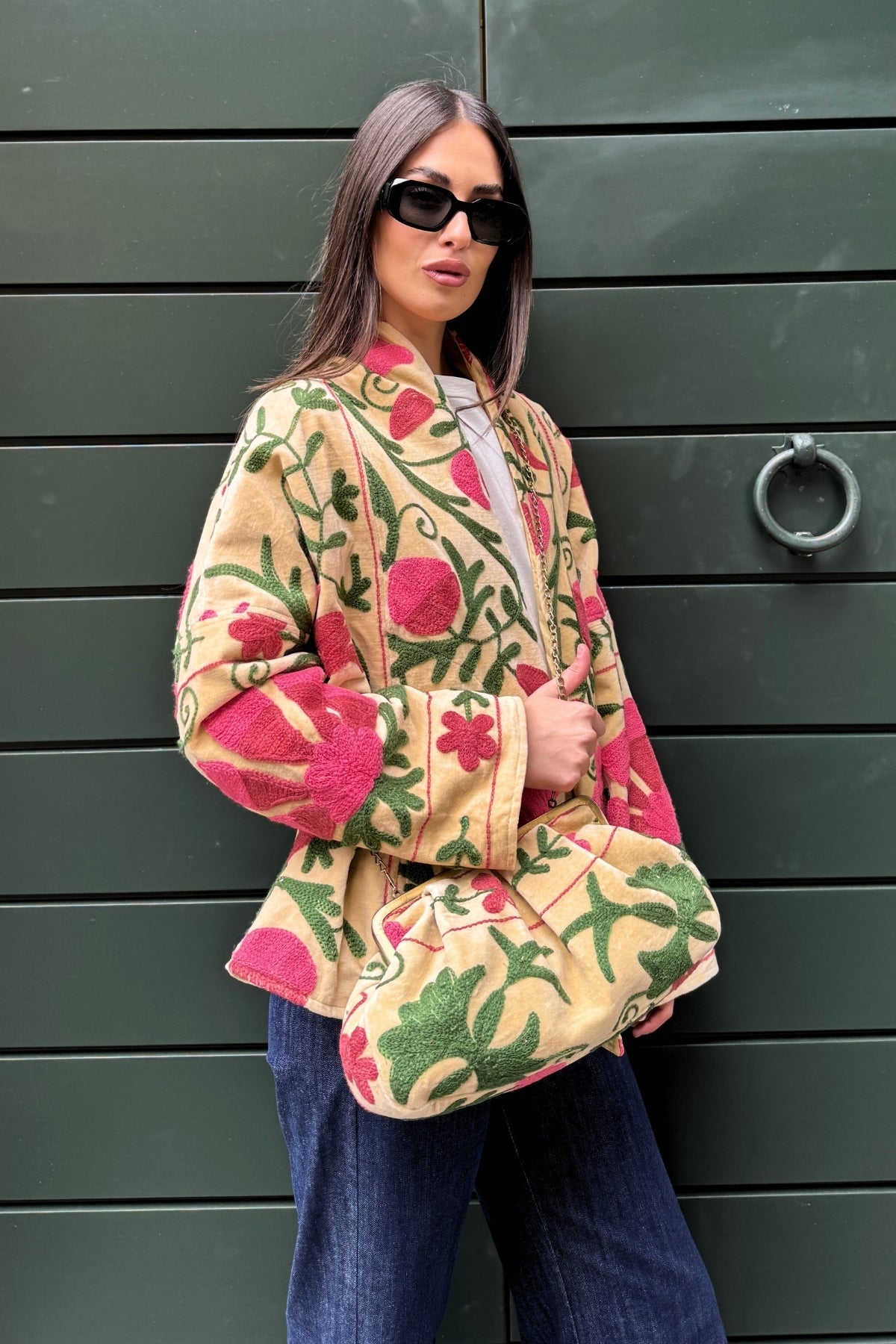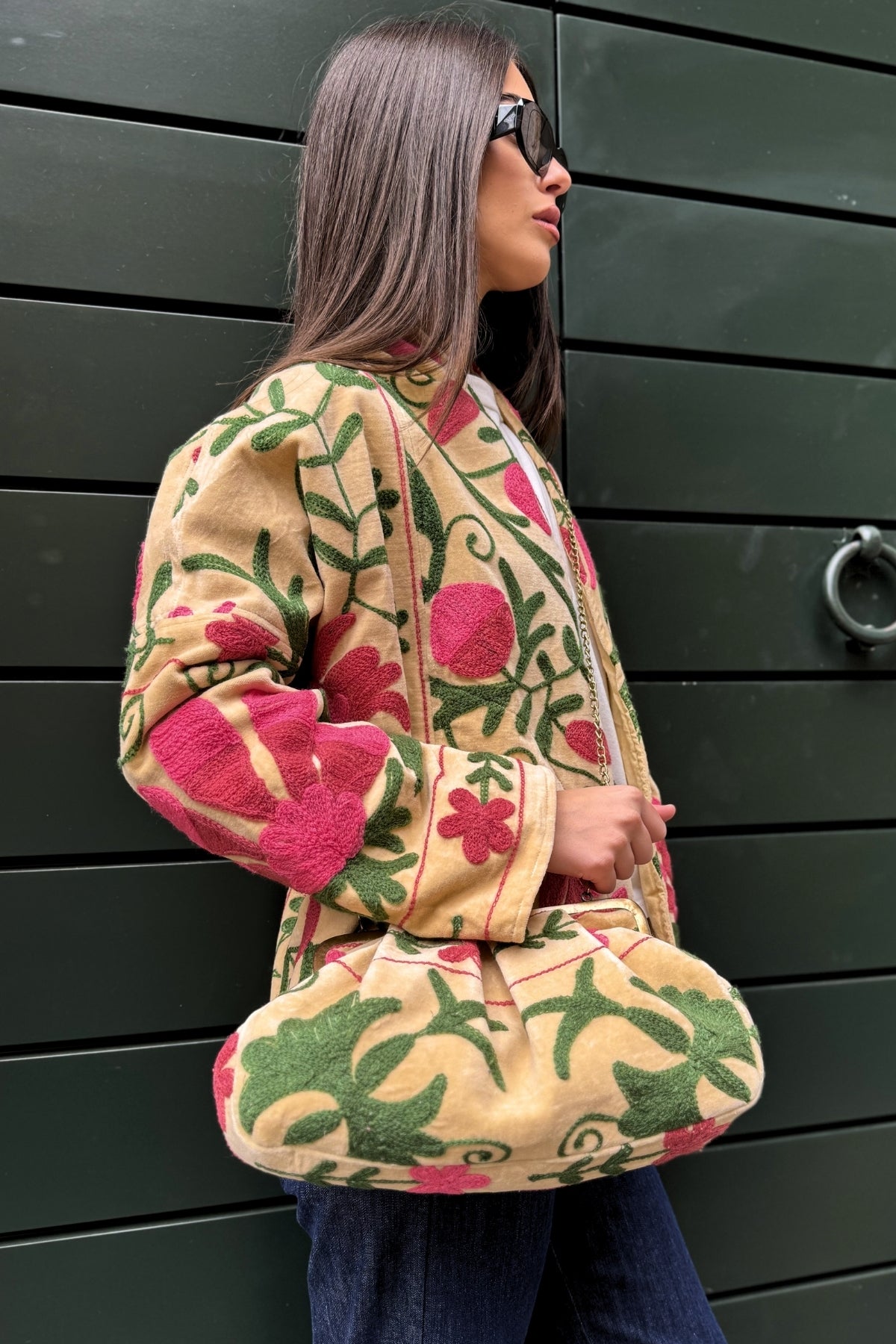 La borsetta Stella Ricamata a Mano, realizzata in velluto di cotone naturale, unisce la morbidezza del tessuto all’eleganza del ricamo artigianale. Ogni motivo è eseguito a mano, rendendo ogni borsa un pezzo unico, custode di un sapere antico e di una raffinatezza senza tempo.