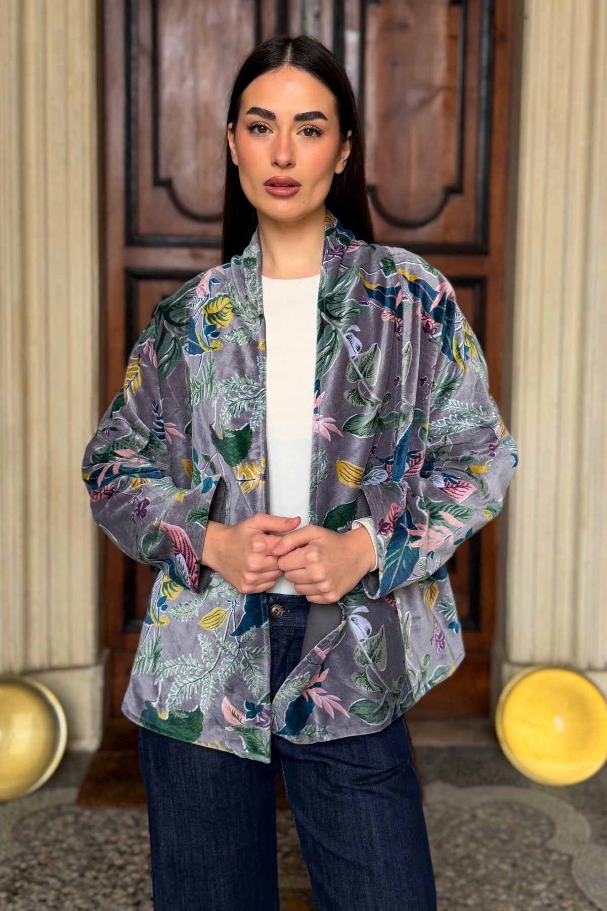 ARTEFILIA-MILANO - giacca uma velluto stampato - BURANO GRIGIO