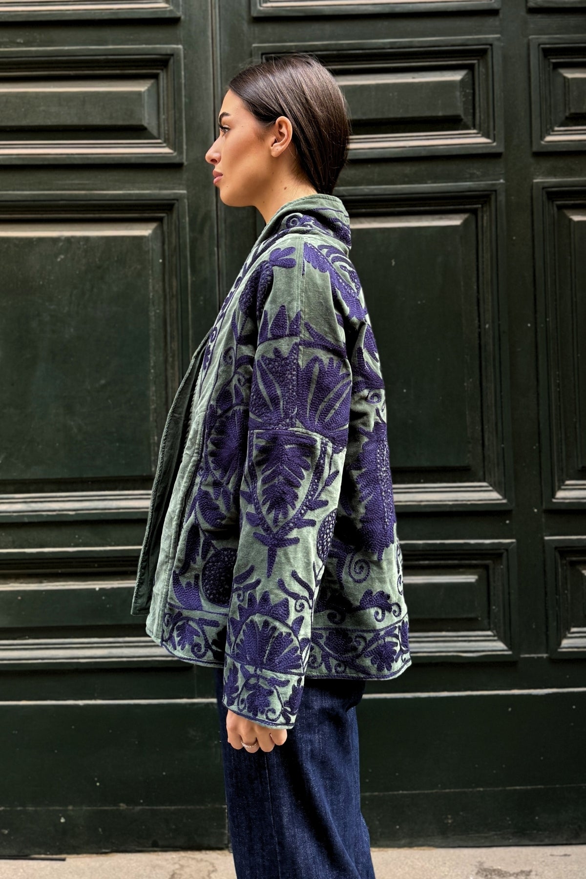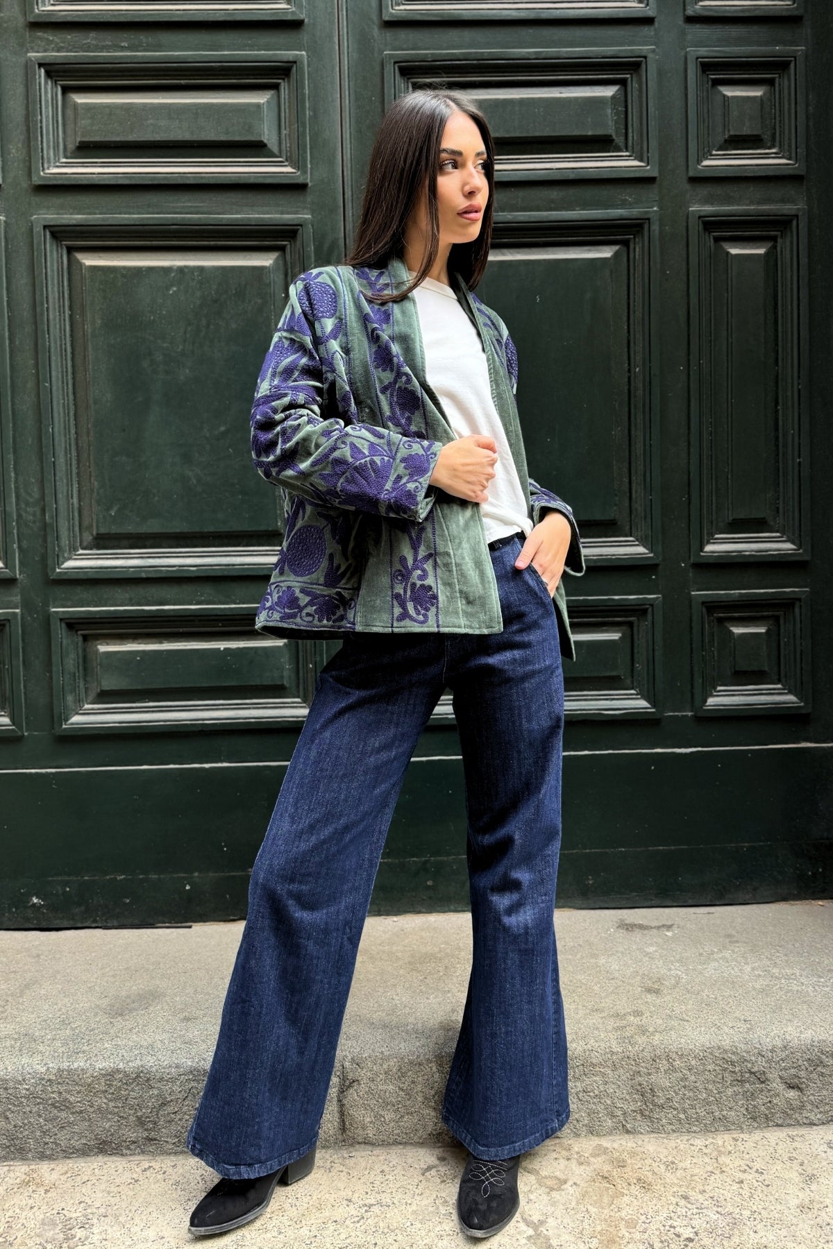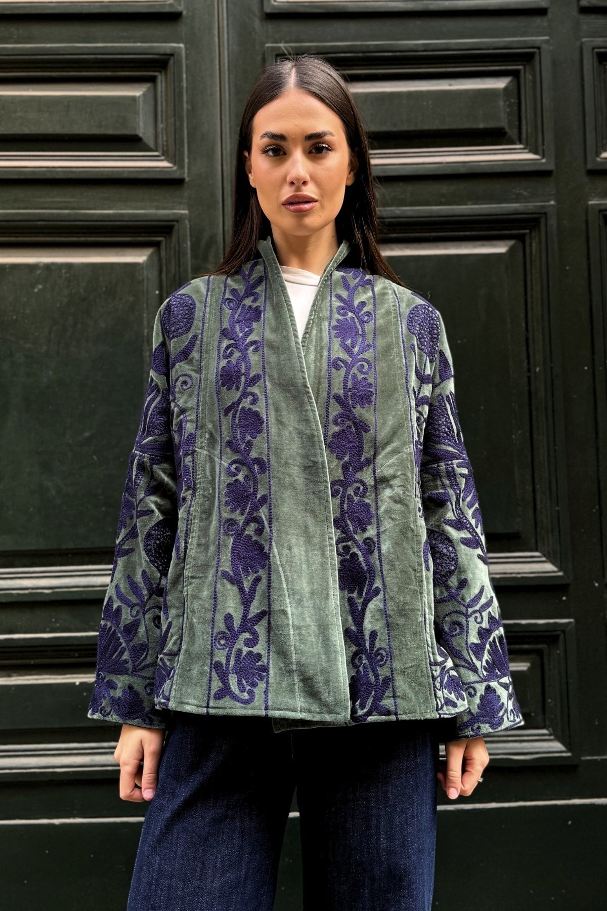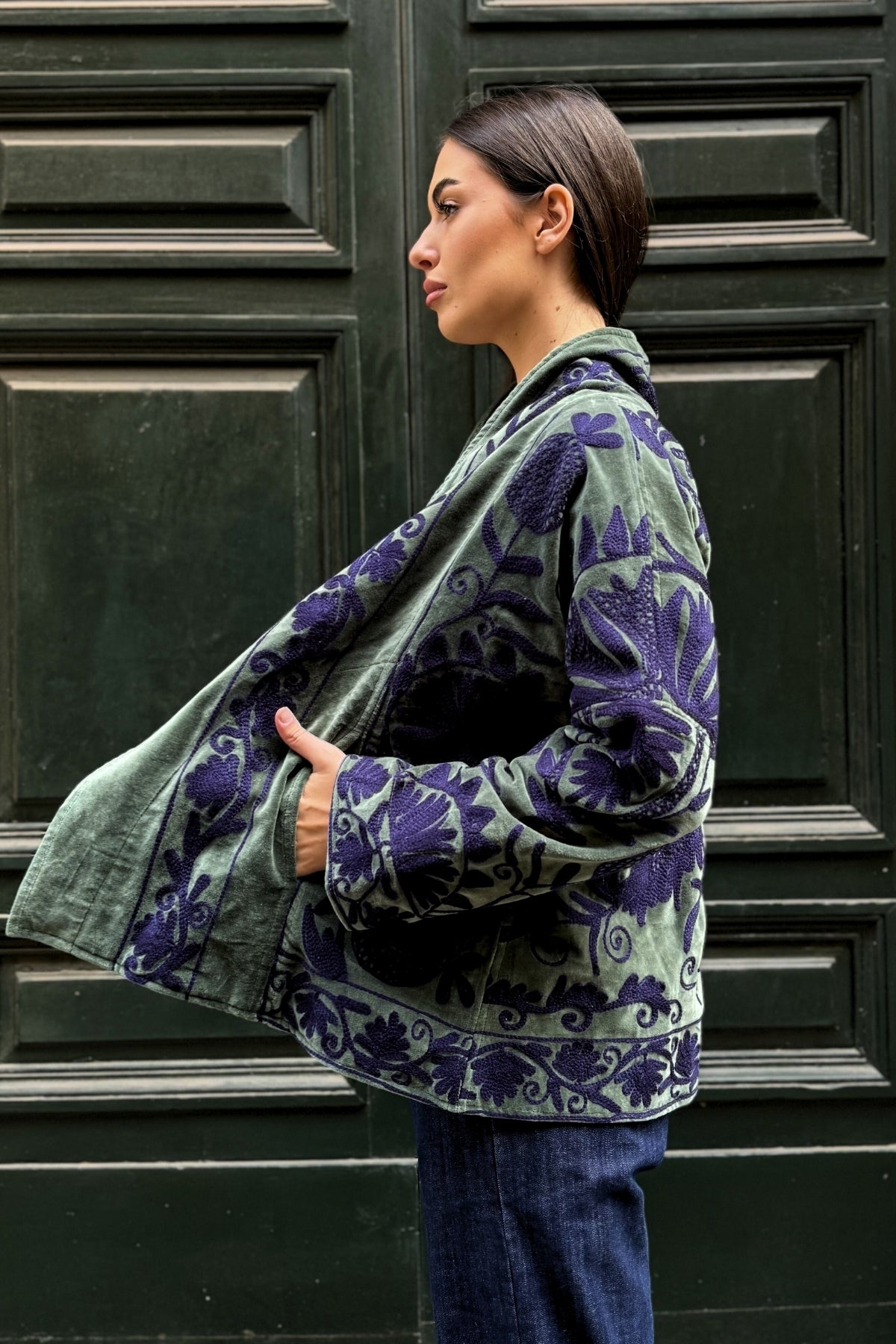 Il taglio a trapezio, studiato per donare struttura e carattere ad ogni look e per adattarsi armoniosamente a ogni tipo di fisico, In velluto di cotone naturale, foderata all’interno e arricchita da dettagli unici, è un capo che unisce tradizione artigianale e raffinatezza contemporanea., rendendo ogni giacca un pezzo unico.