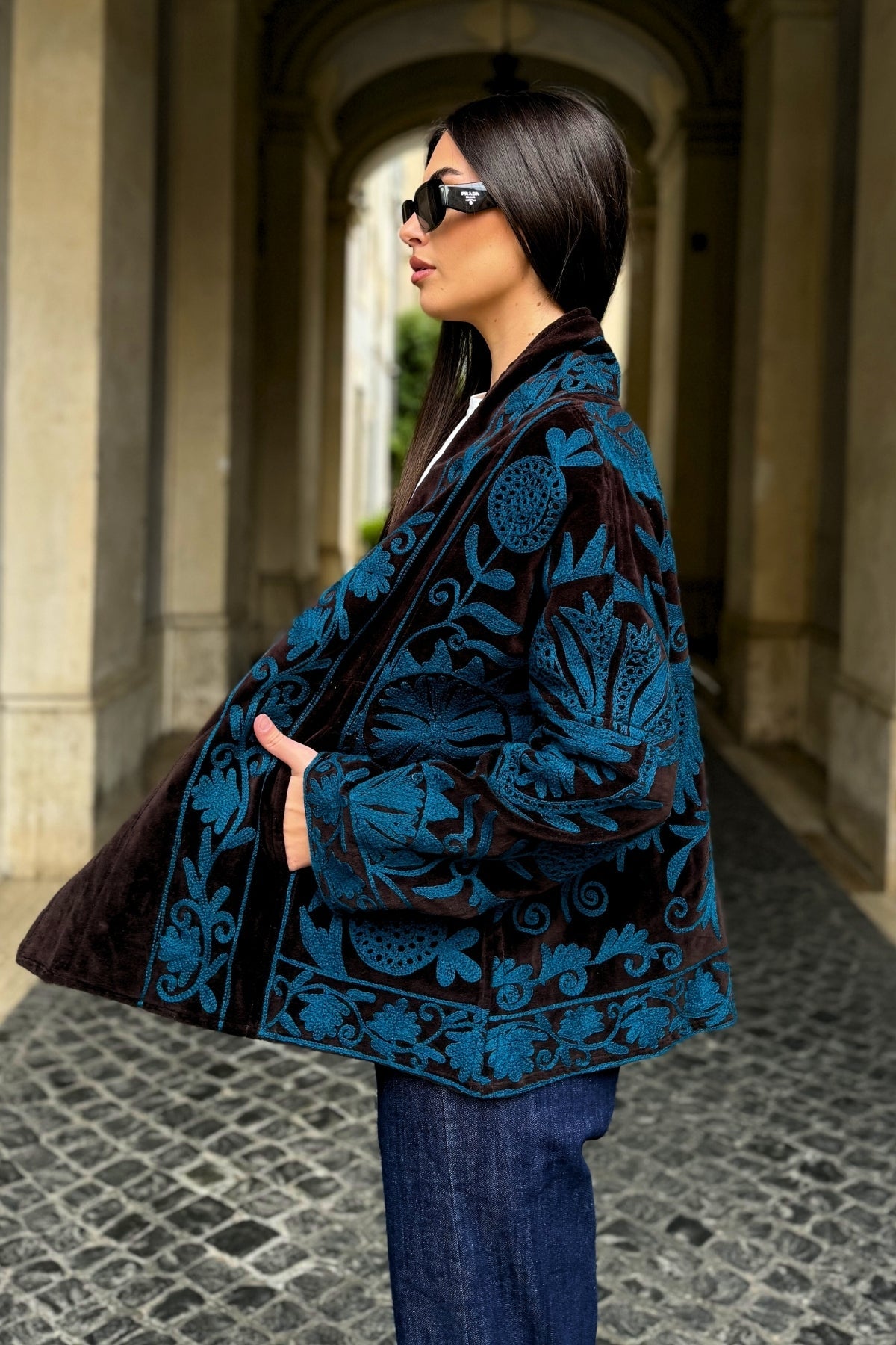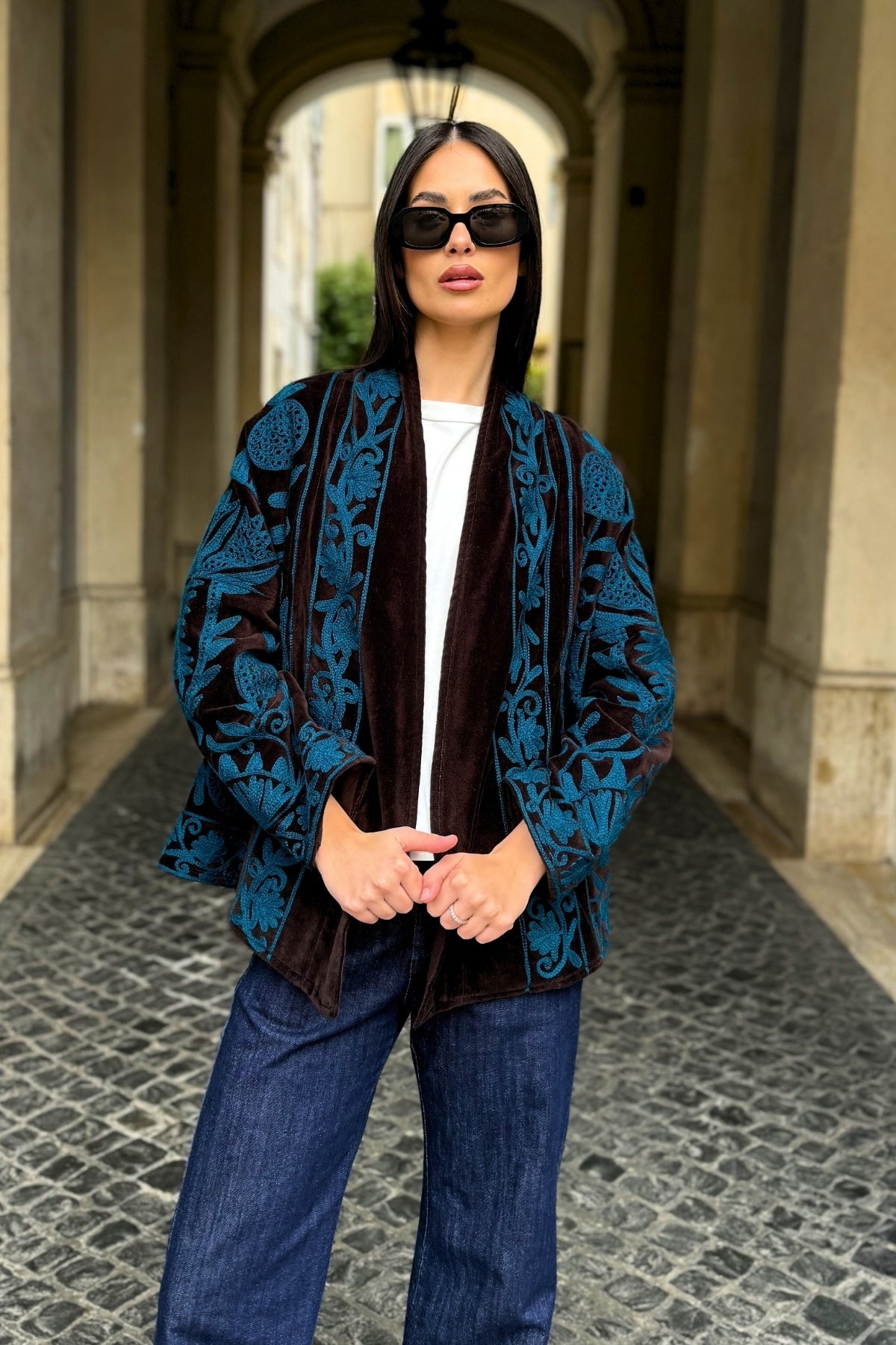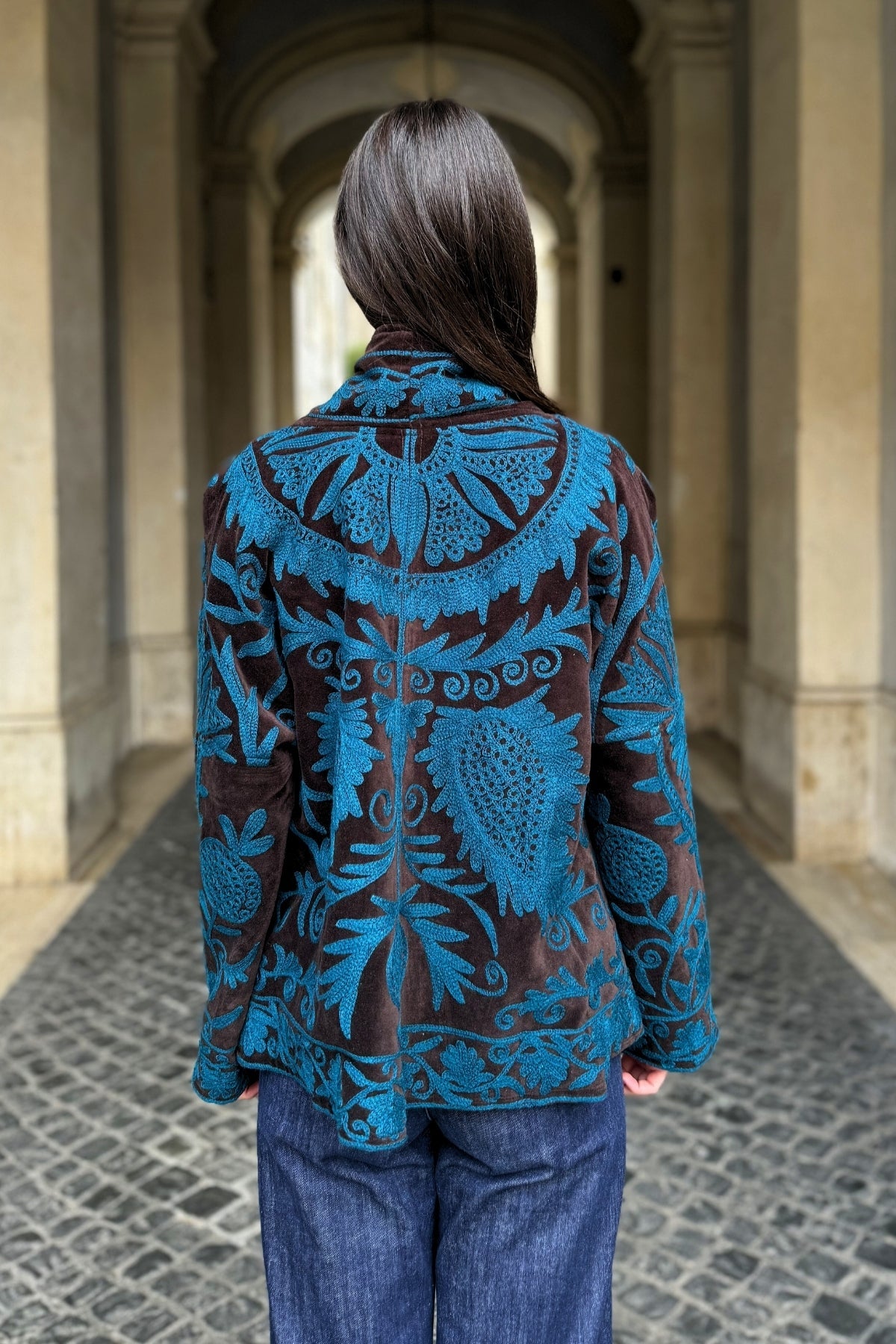Il taglio a trapezio, studiato per donare struttura e carattere ad ogni look e per adattarsi armoniosamente a ogni tipo di fisico, In velluto di cotone naturale, foderata all’interno e arricchita da dettagli unici, è un capo che unisce tradizione artigianale e raffinatezza contemporanea., rendendo ogni giacca un pezzo unico.